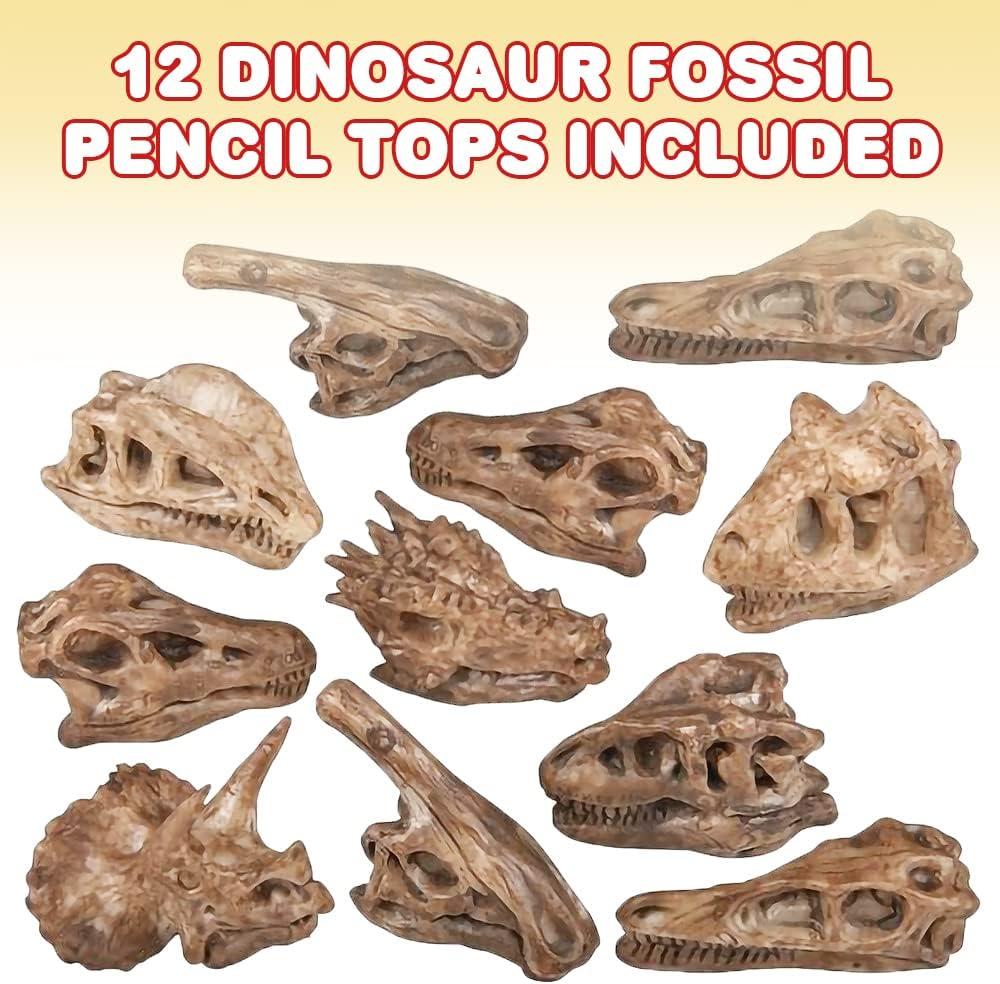 ArtCreativity Dinosaur Fossil Pencil Tops, Set of 12, Dinosaur Party Favors and Classroom Prizes for Kids, Great Back to School Gifts for Boys and Girls, Durable Plastic Dinosaur Pencil Toppers