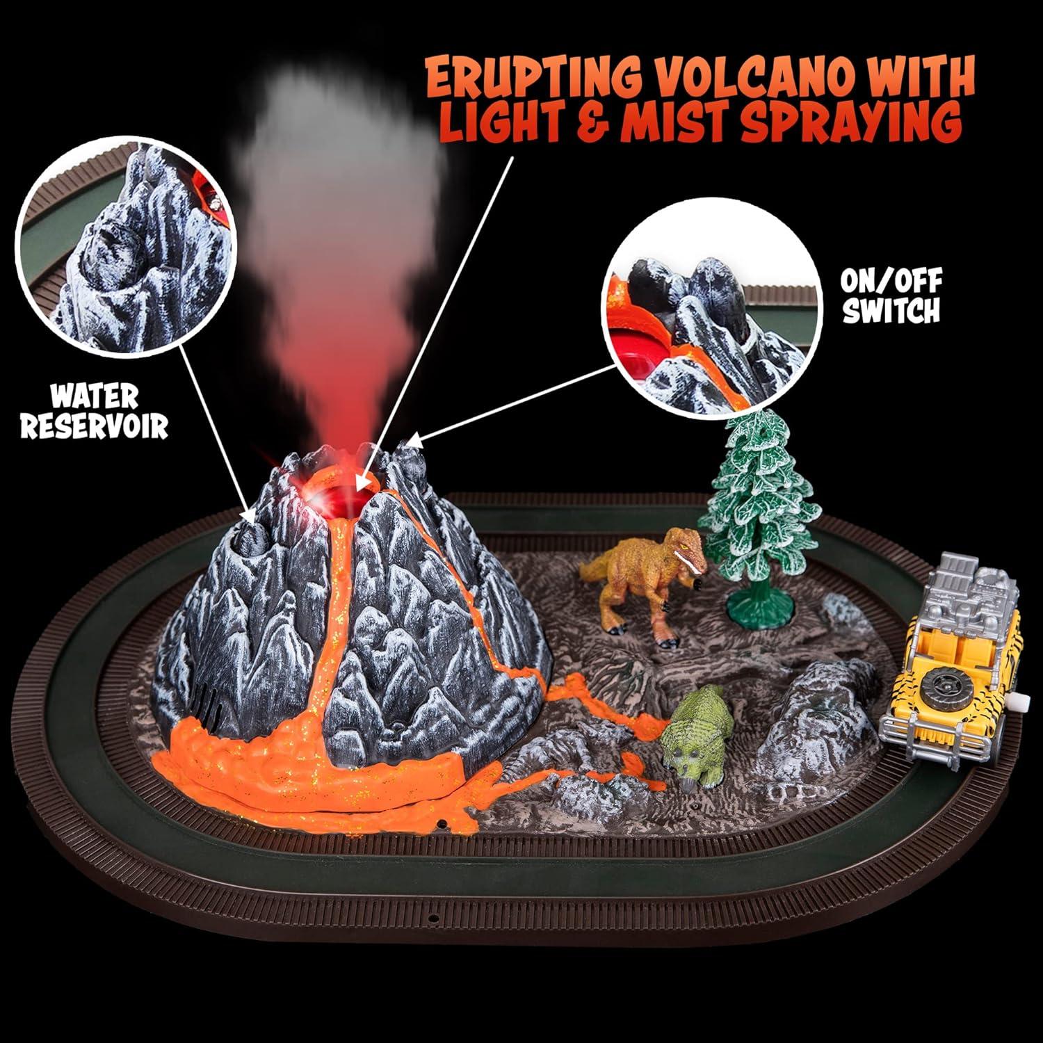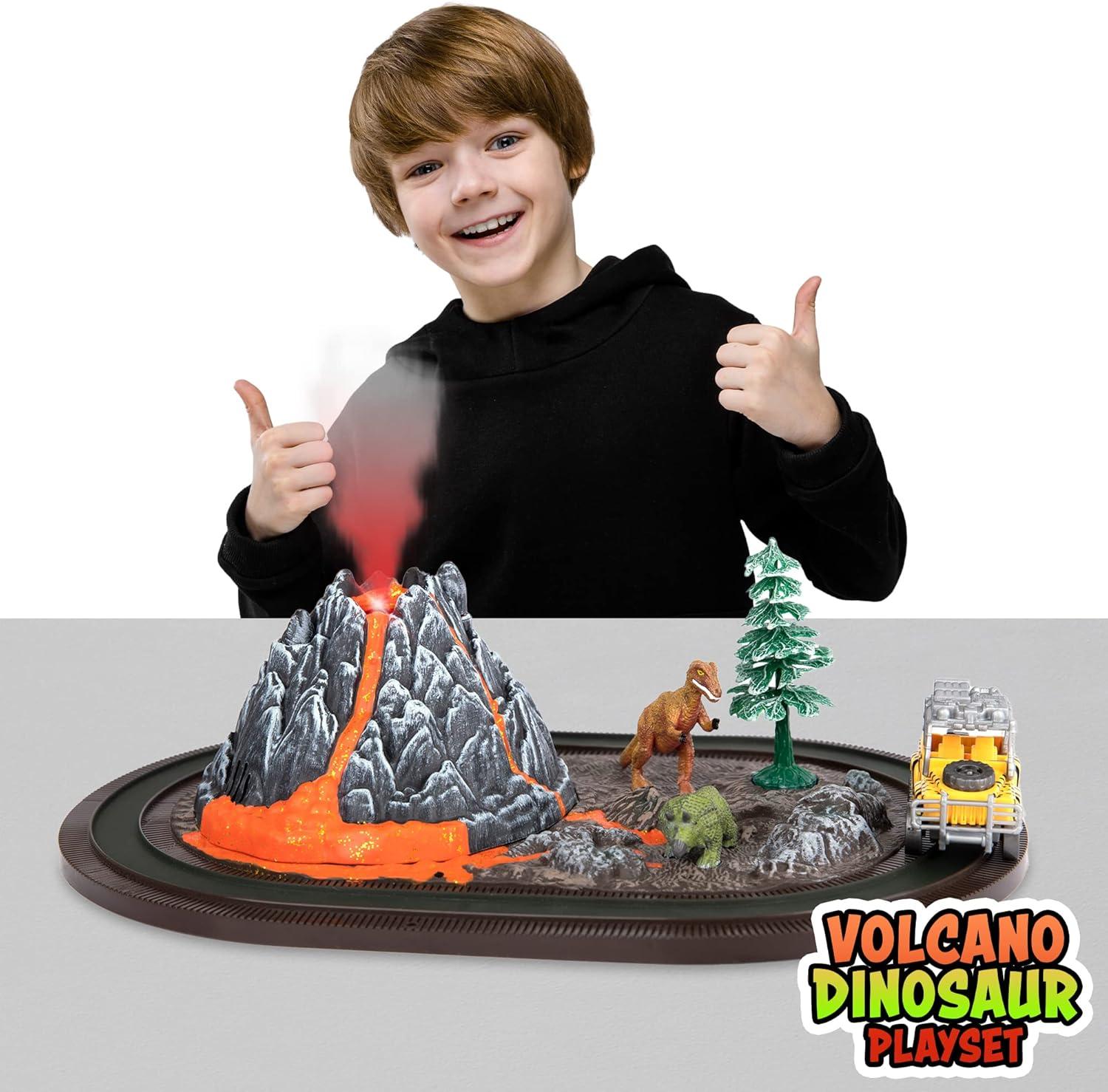 ArtCreativity Dinosaur Playset with Volcano Eruptions, Sounds & Wind-up Truck