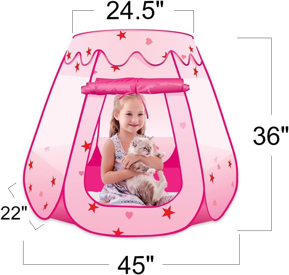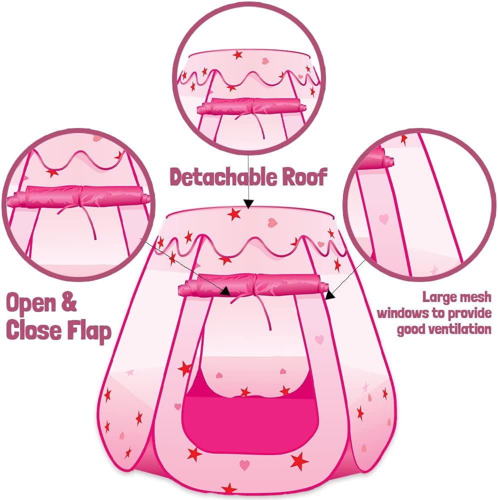 ArtCreativity Pop Up Princess Tent, Kids Playhouse Tent with a Carry Bag, Foldable Pink Princess Ball Pit for Girls 1,2 3,4 Year Old Birthday, Indoor & Outdoor Play House for Kids