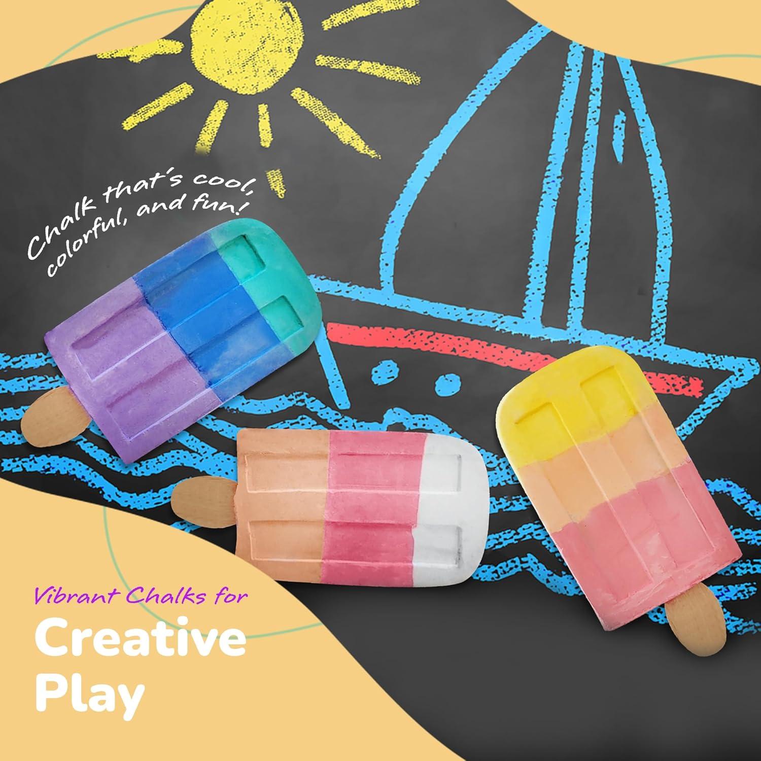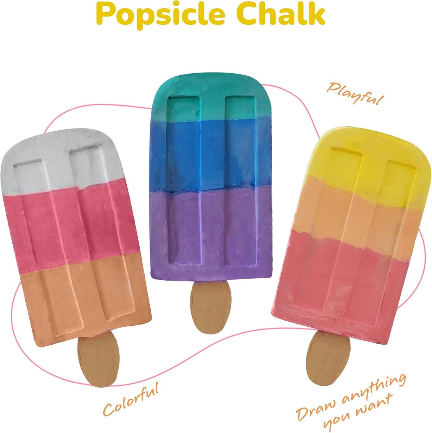ArtCreativity Popsicle Chalk – Set of 3 – Popsicle Shaped Sidewalk Chalks – Washable Chalk for Kids Outdoor Painting Activities – Non-Toxic Colorful Chalkboard Chalk – Classroom Prize Art Supply Set