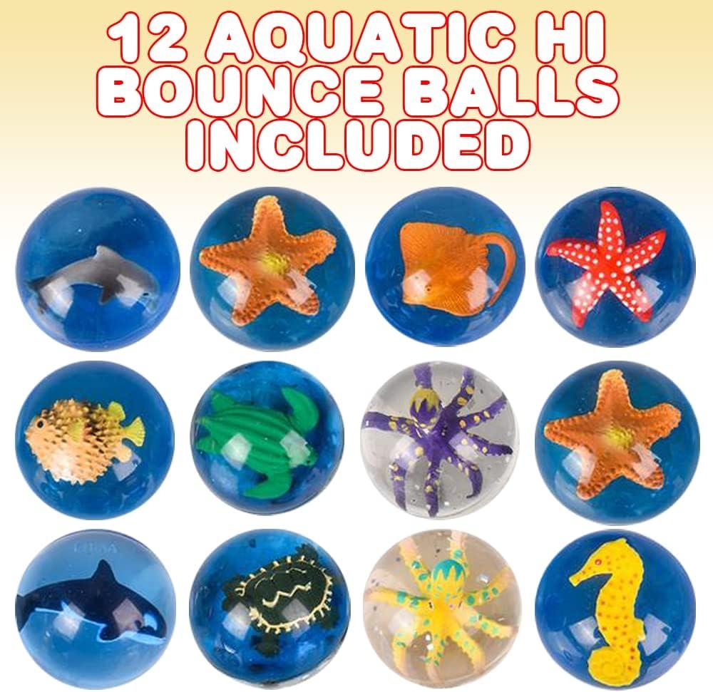 ArtCreativity High Bounce Balls with 3D Dinosaur Inside, Set of 12, Dino High Bounce Balls for Kids, Outdoor Toys for Encouraging Active Play, Dinosaur Party Favors & Pinata Stuffers for Boys & Girls(Aquatic Design)