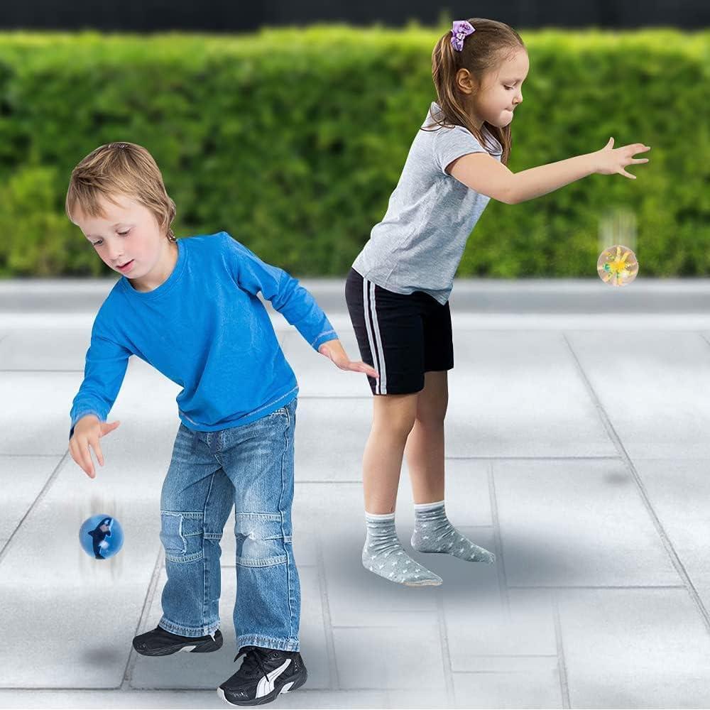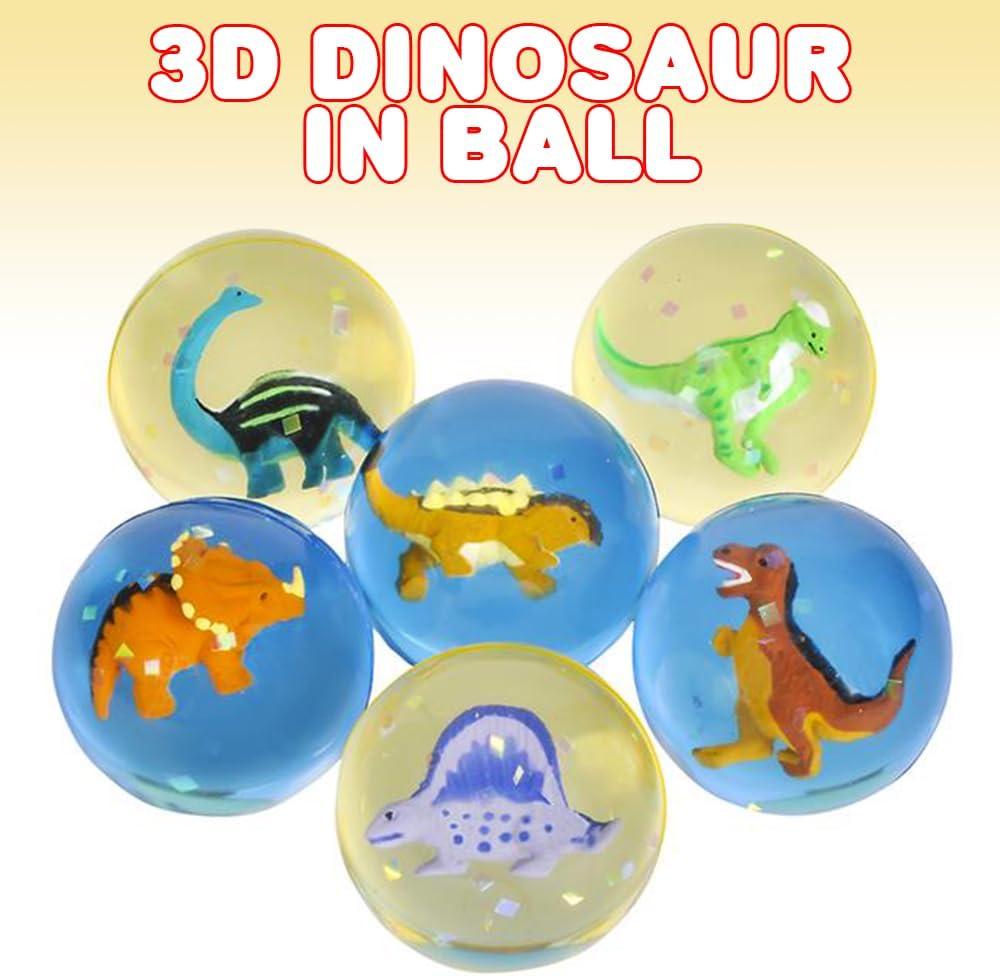 ArtCreativity High Bounce Balls with 3D Dinosaur Inside, Set of 12, Dino High Bounce Balls for Kids, Outdoor Toys for Encouraging Active Play, Dinosaur Party Favors & Pinata Stuffers for Boys & Girls(Sparkle Design)