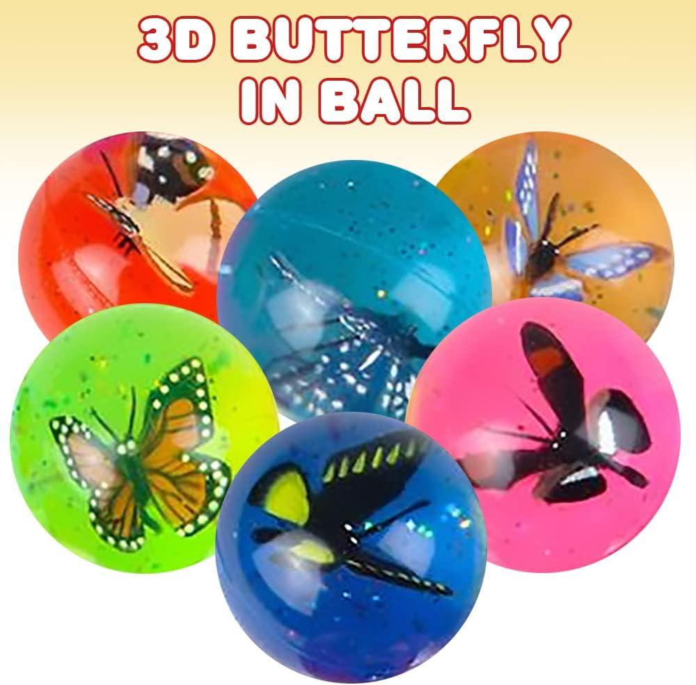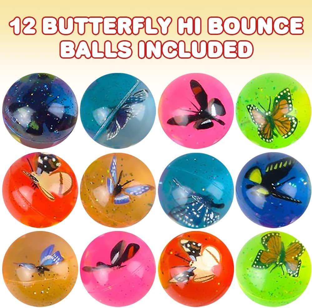 ArtCreativity High Bounce Balls with 3D Dinosaur Inside, Set of 12, Dino High Bounce Balls for Kids, Outdoor Toys for Encouraging Active Play, Dinosaur Party Favors & Pinata Stuffers for Boys & Girls(Butterfly Design)
