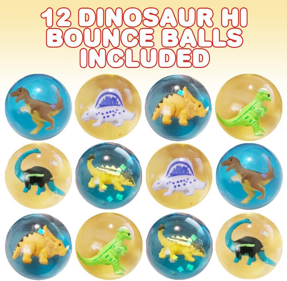 ArtCreativity High Bounce Balls with 3D Dinosaur Inside, Set of 12, Dino High Bounce Balls for Kids, Outdoor Toys for Encouraging Active Play, Dinosaur Party Favors & Pinata Stuffers for Boys & Girls(Dinosaur Assortment 1)