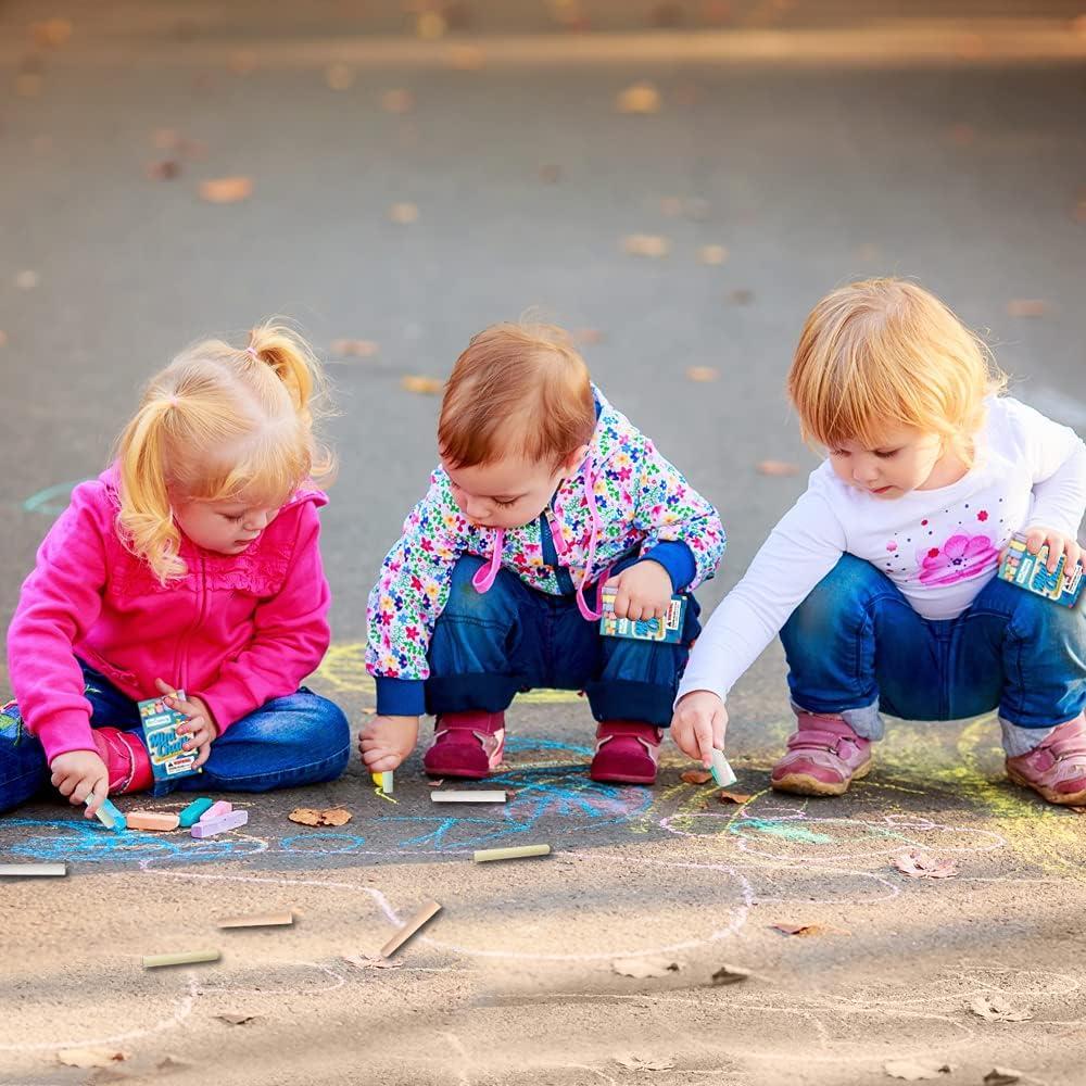 GREAT QUALITY: Nice and sturdy, the chalk pieces are designed to hold up to hours of fun. These school quality chalk sticks are also great for use in the classroom and are 100% non toxic chalk to ensure safe play. Giving them out as little gifts? The beautifully printed boxes make for striking presentation.