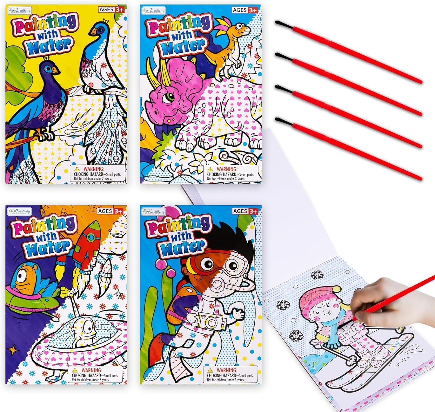 ArtCreativity 4 Pack Mini Paint with Water Books for Kids – Total of 96 Pages -Mess Free Coloring for Toddlers -Water Coloring Books Mess Free Painting -Water Painting Books for Kids 1 2 3 4 5 6 7 8+