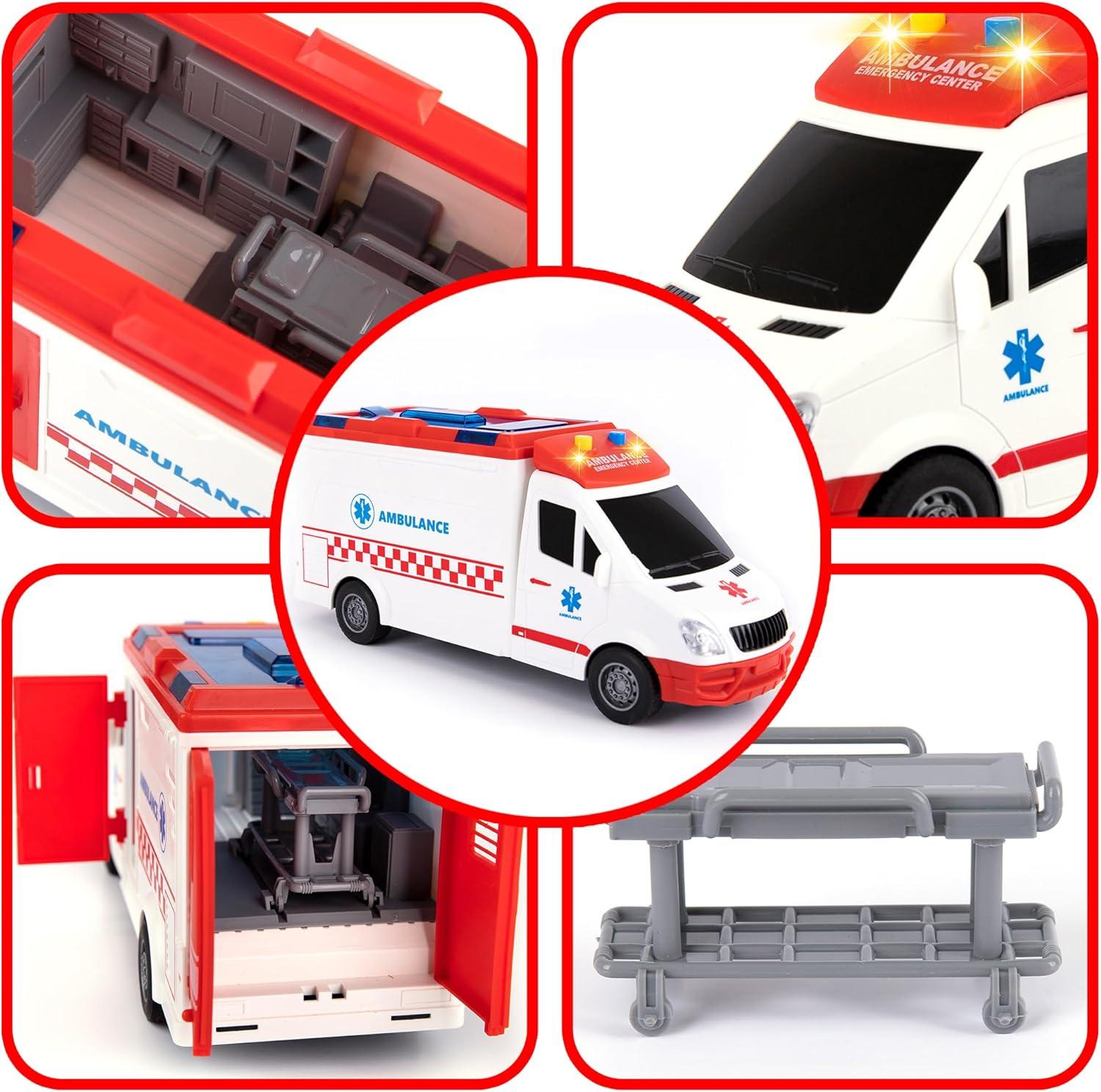 ArtCreativity Ambulance Toy Truck for Kids, Lights & Siren, Friction-Powered 1/16 Scale Rescue Toy Ambulance, Emergency Vehicle Ambulance Toys for Kids 3-8 with Removable Stretcher, Doors Open