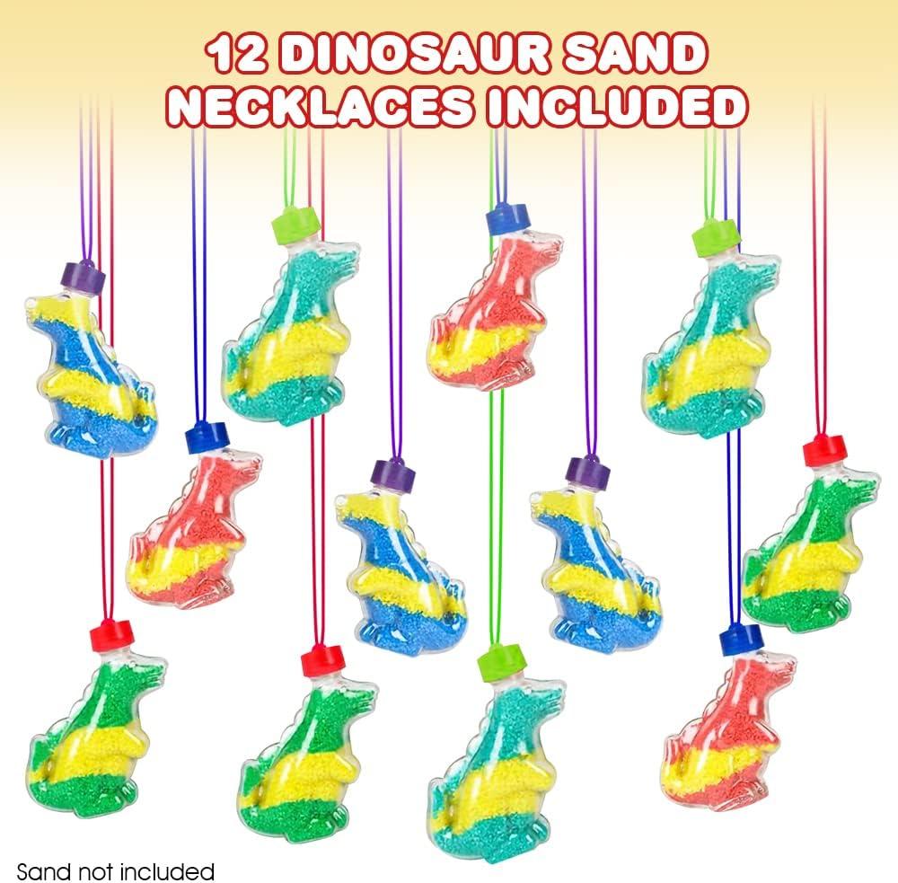 ArtCreativity Dinosaur Sand Art Bottle Necklaces, Pack of 12, Craft Kit with Shaped Bottles, Craft Party Supplies and Party Favors for Kids – Sand Sold Separately (Dinosaur)