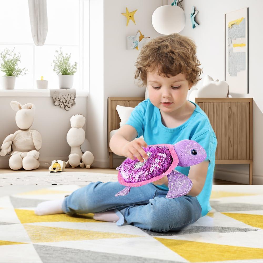 ArtCreativity Flip Sequin Sea Turtle Plush Toy, 1PC, Soft Stuffed Sea Turtle with Color Changing Sequins, Cute Home and Nursery Animal Decorations, Calming Fidget Toy for Girls & Boys, 10.5 Inches