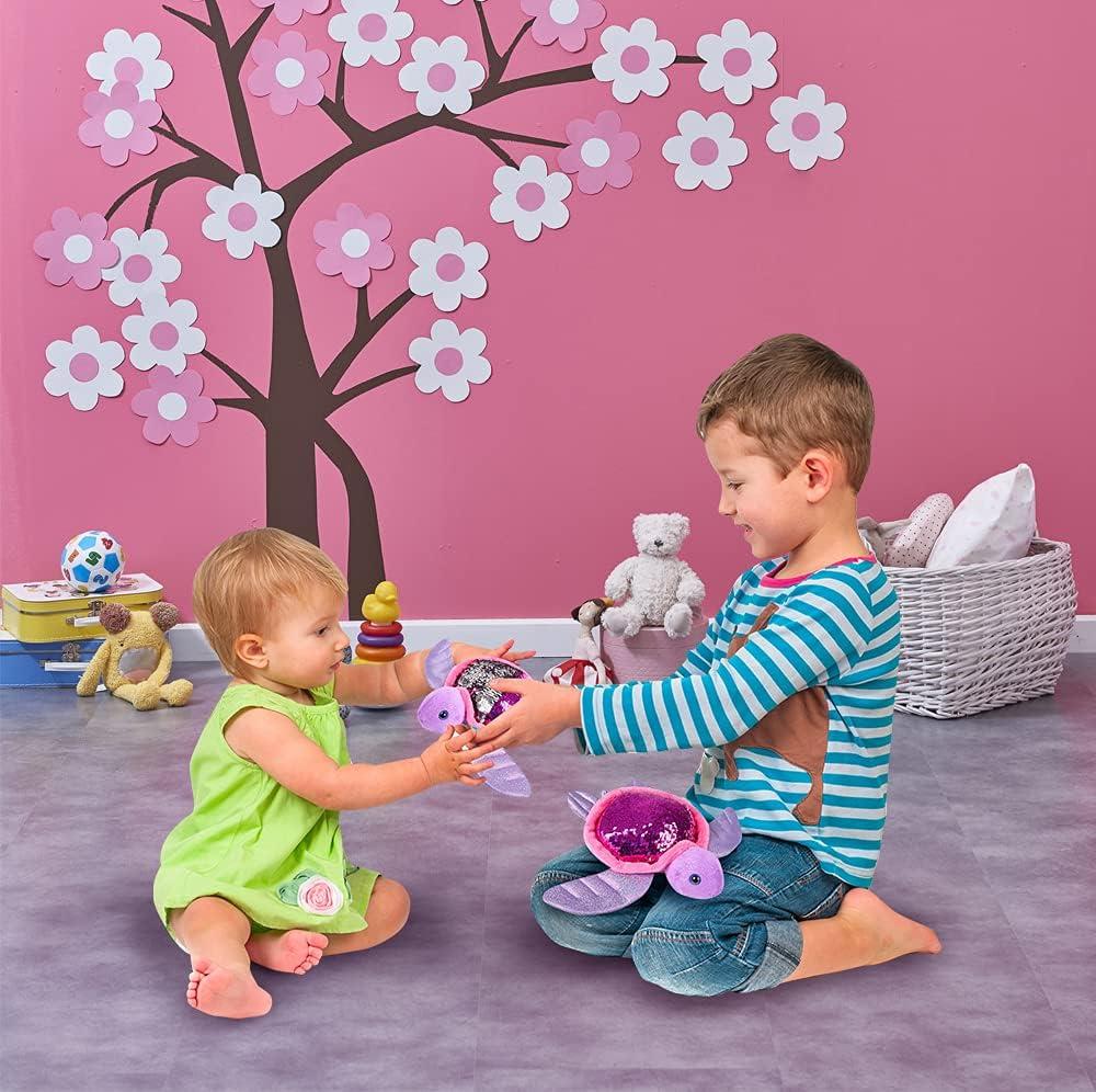 WITNESS THE CUTENESS: A sea turtle with a color-changing surprise! A serious treat for lovers of all things aquatic, this stuffed sea turtle stands out with flip sequins on its shell. Run your hands over the sequins and watch them go from shiny silver to pretty purple.