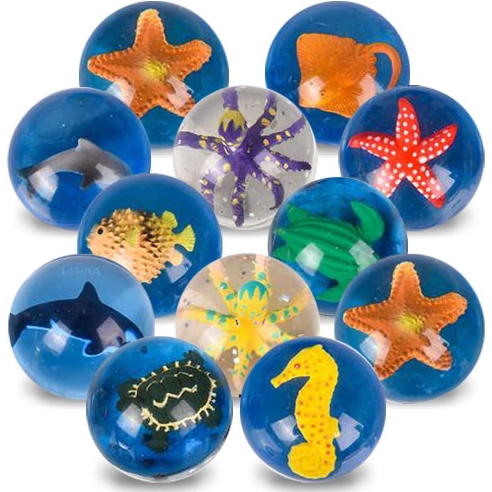 ArtCreativity High Bounce Balls with 3D Dinosaur Inside, Set of 12, Dino High Bounce Balls for Kids, Outdoor Toys for Encouraging Active Play, Dinosaur Party Favors & Pinata Stuffers for Boys & Girls(Aquatic Design)
