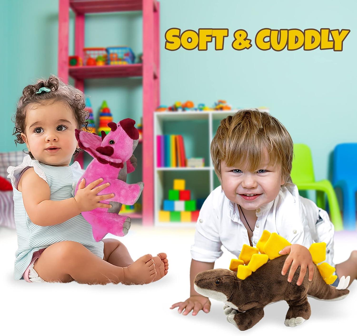 SPRUCE UP ROOMS: Add a serving of dino magic to playrooms, bedrooms, nurseries, or classrooms. Both you and the kiddos will love the vibrant colors that pop from a distance. And we’ve sized these stuffed dinosaur toys to stand out while fitting into most spaces.