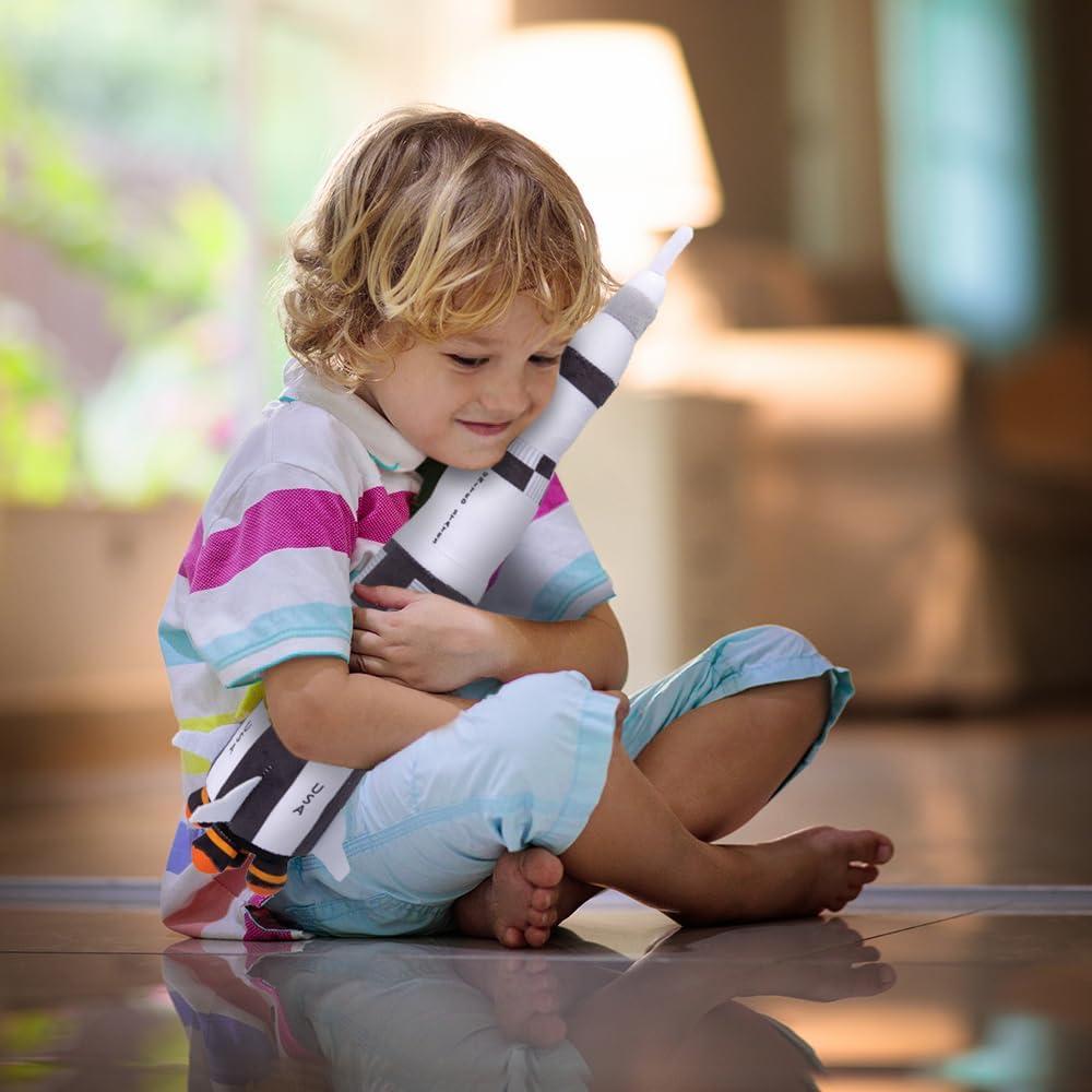 LAUNCH THEIR IMAGINATION: A plush treat for little lovers of exploration and space! This Saturn rocket stuffed toy ignites hours of fun while encouraging kiddos to think big and shoot for the moon. Includes 1 space shuttle soft plush measuring 18.5”.